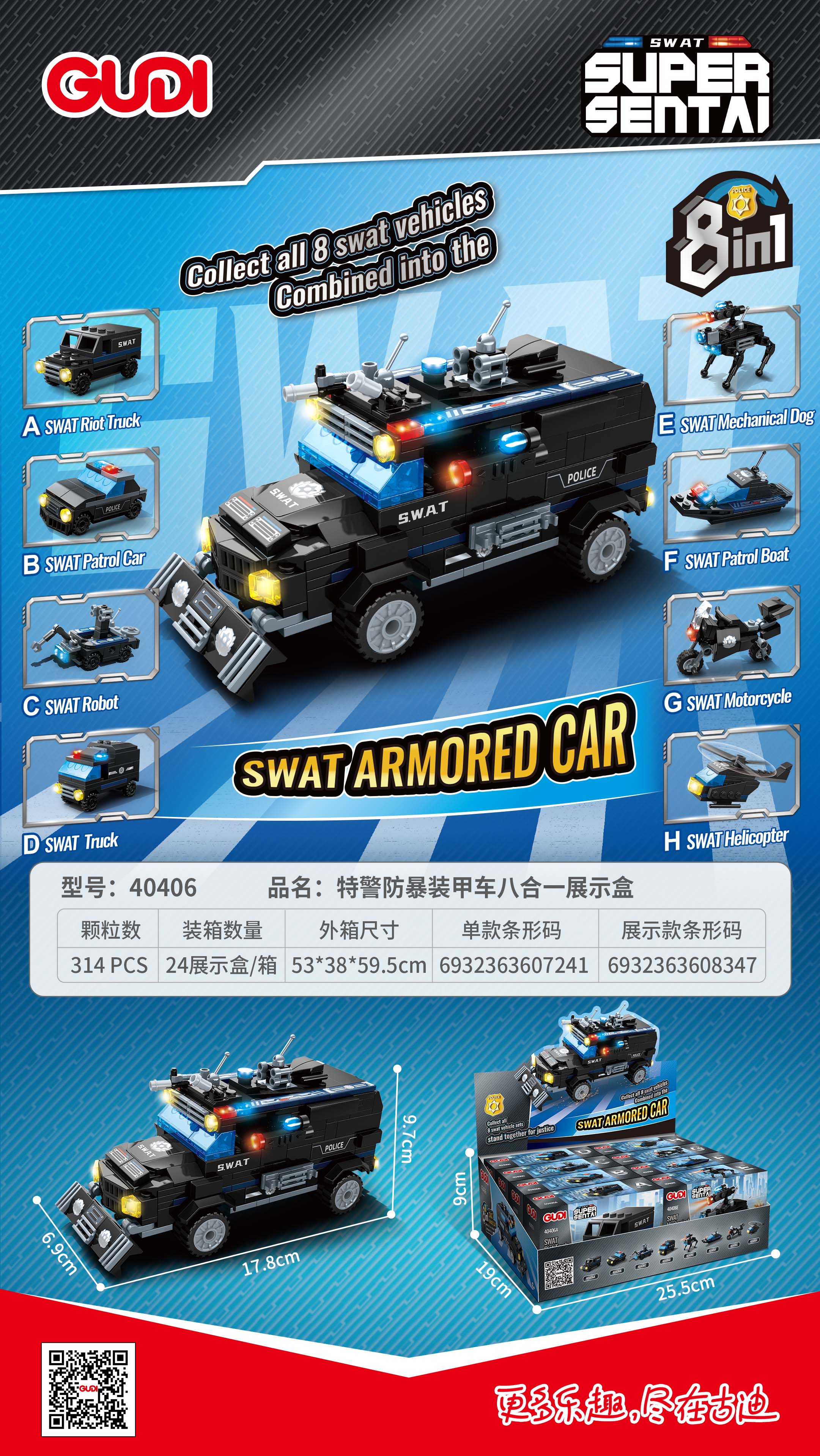 特警防暴裝甲車八合一展示盒